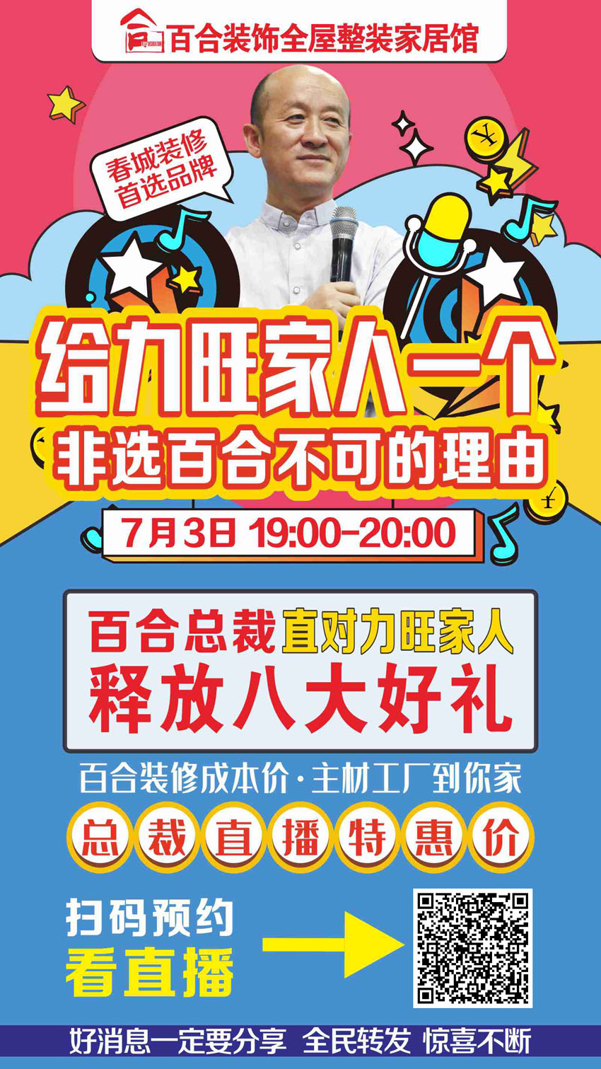 7月3號(hào)百合裝飾 總裁直播 力旺康城小區(qū)專場(chǎng)福利團(tuán)購(gòu)活動(dòng)!